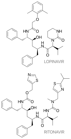 로피나비르(Lopinavir)는 HIV-1 프로테아제 억제제(PI)로, 반드시 리토나비르(ritonavir)와 병용하여 사용되는 항레트로바이러스 약물입니다. 2000년 Abbott사에서 Kaletra 상품명으로 출시되었으며, 현재는 WHO 필수의약품 목록에 포함되어 있습니다.